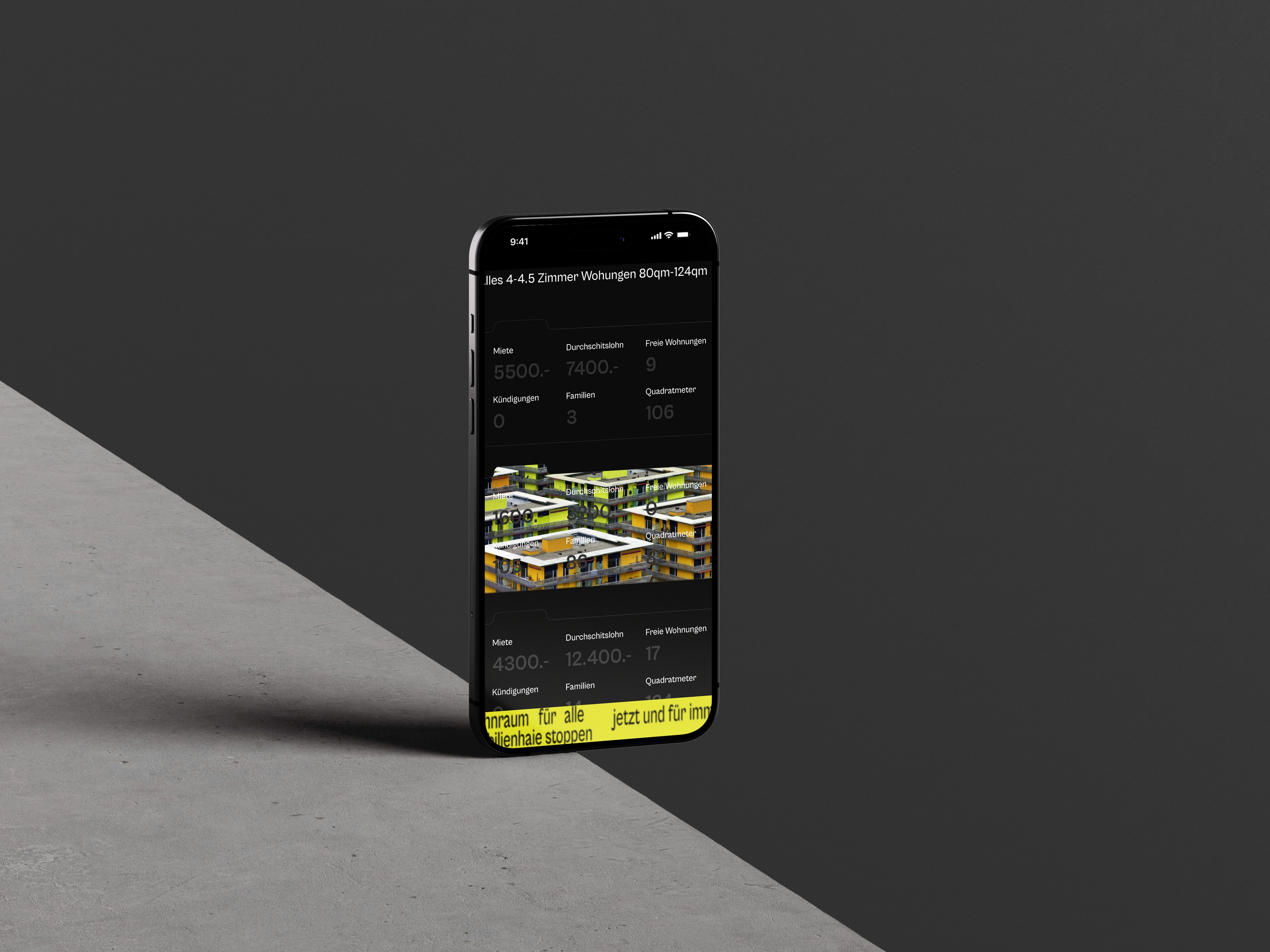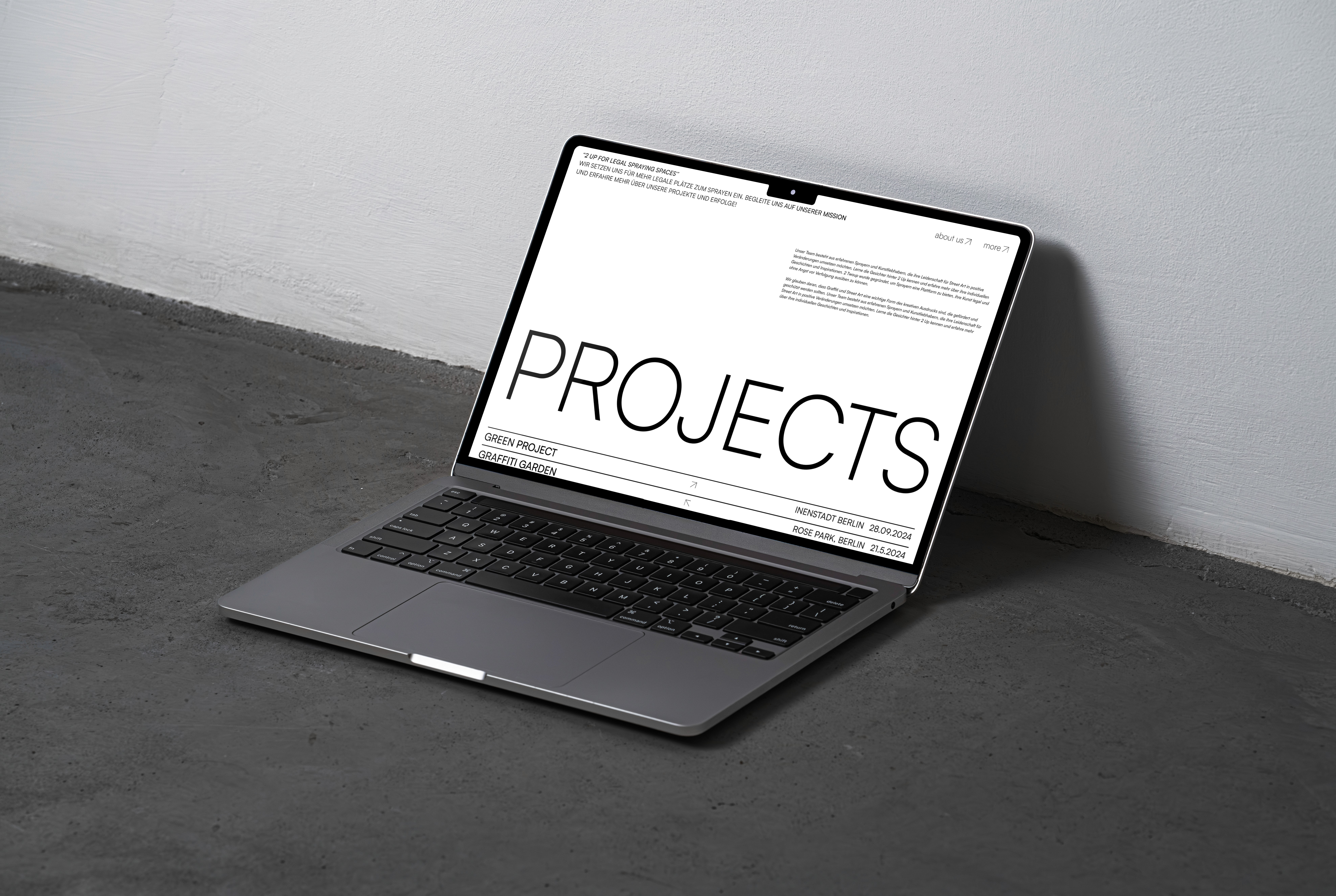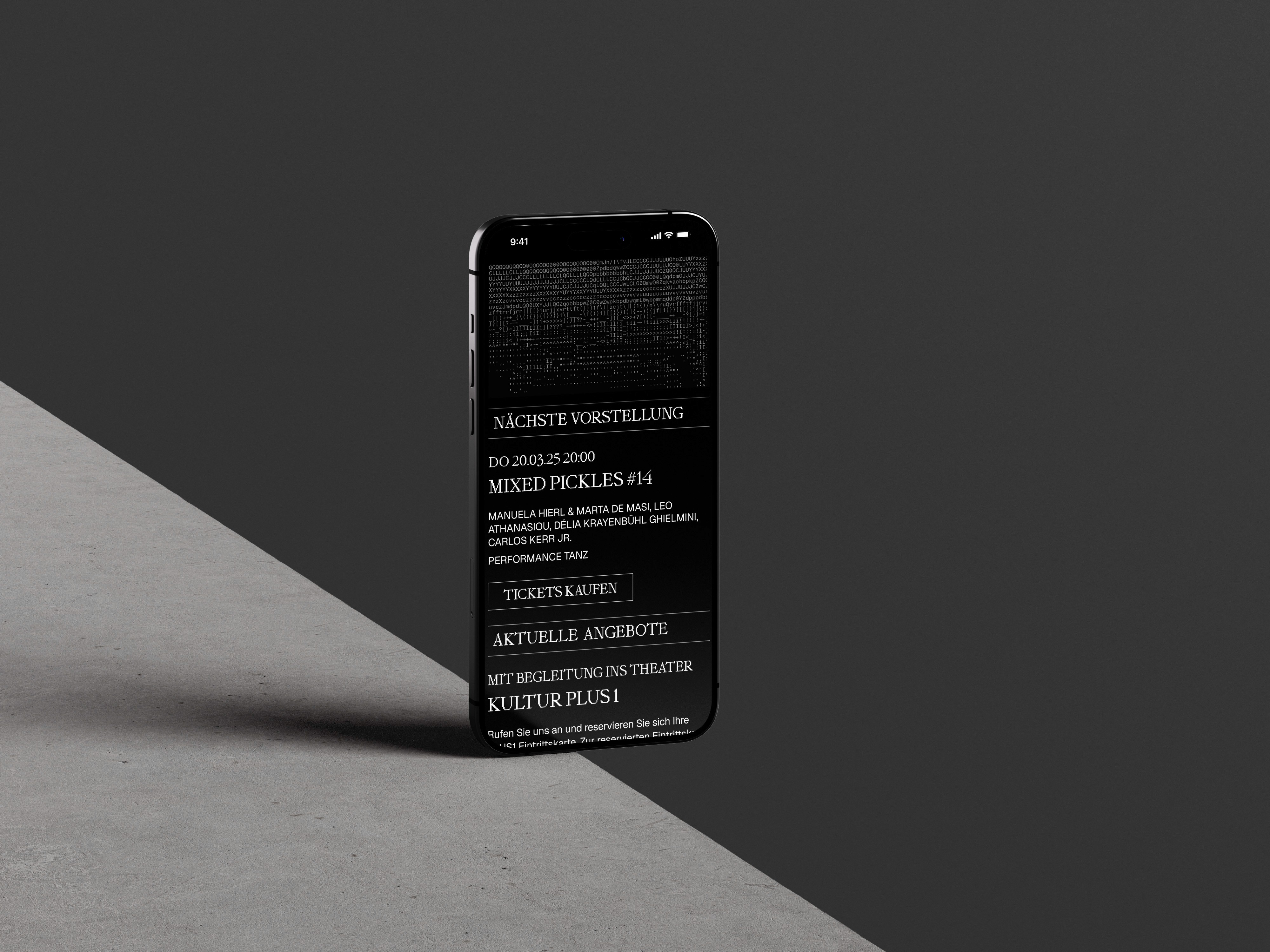 This is just a decoration text. I love to play around with typography and place it where it doesn’t fit. I love to break out of the classic text–picture–button layout.