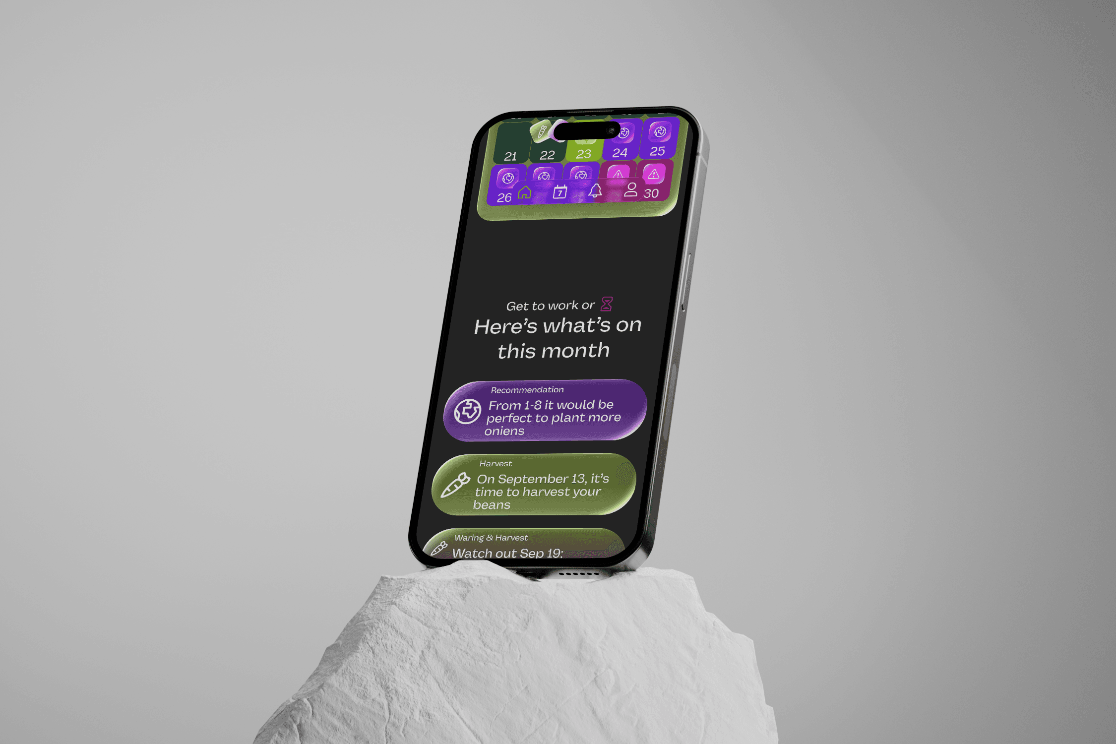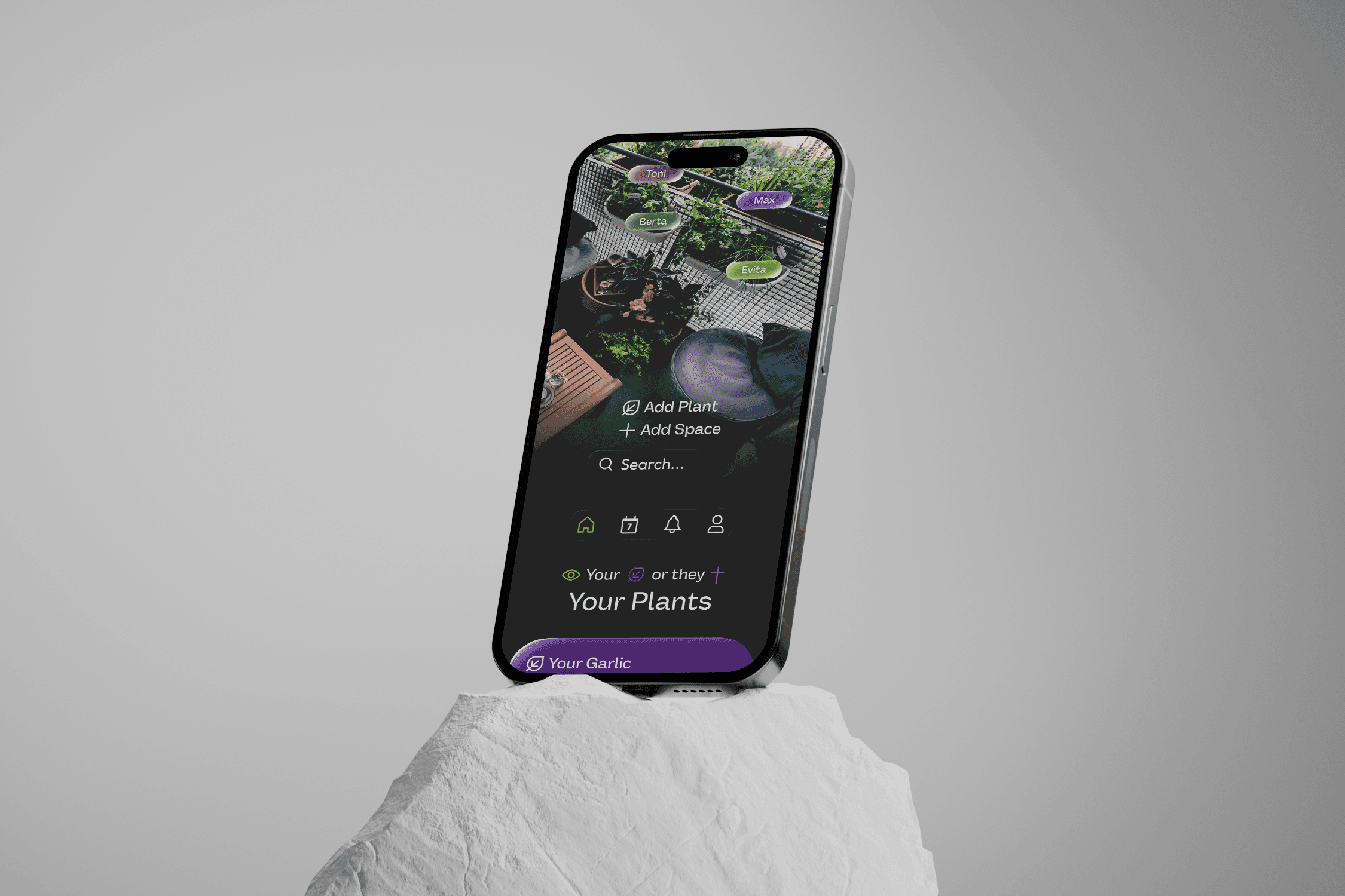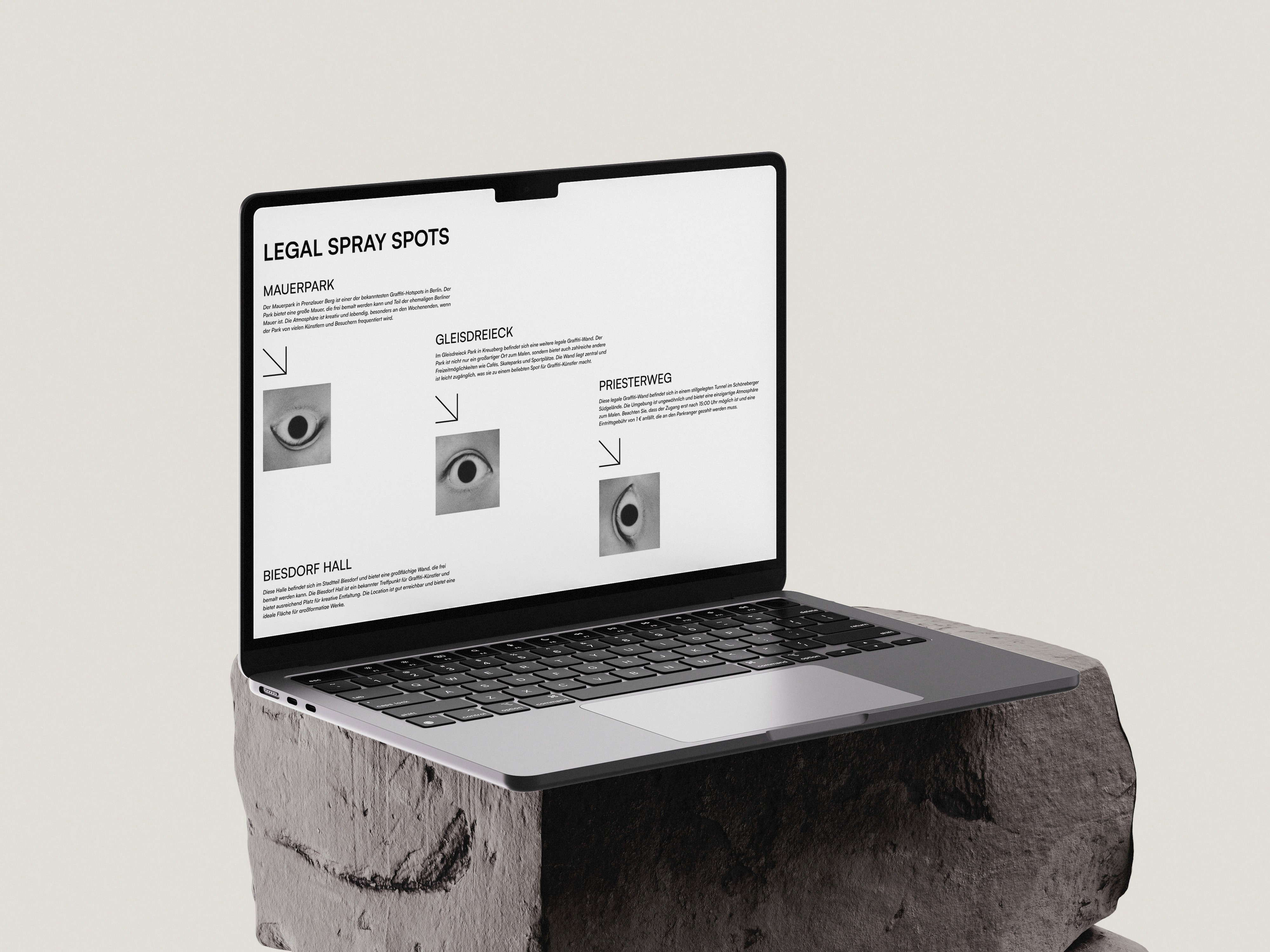 This is just a decoration text. I love to play around with typography and place it where it doesn’t fit. I love to break out of the classic text–picture–button layout.